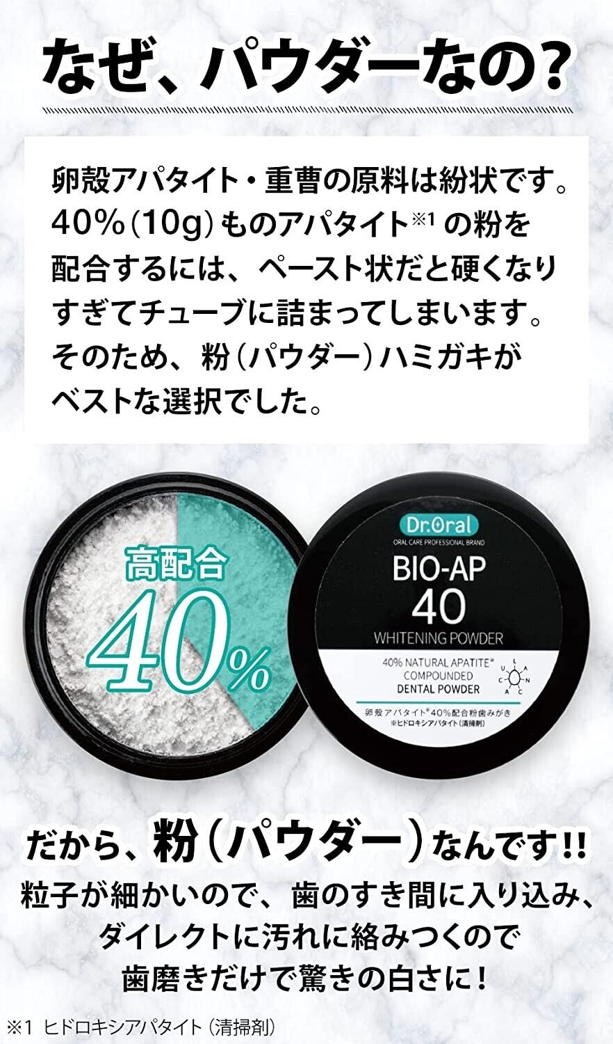 Thành phần chính trong Bột tẩy trắng răng Dr.Oral Whitening Powder Bio-AP 40: